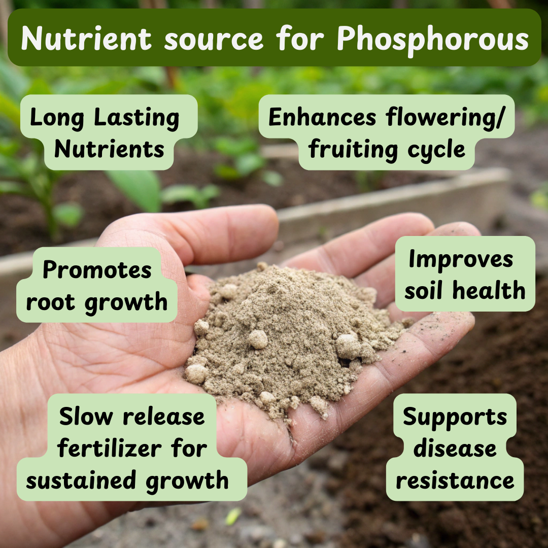 Bone Meal Fertilizer is a natural source of phosphorus, an essential nutrient that plays a crucial role in photosynthesis, root and flower development, seed production, and energy transfer within plants. Phosphorus, represented as “P” in the NPK ratio, promotes higher fruit and seed yields, enhances flowering, and improves pest and disease resistance, making it vital for healthy, productive plants.